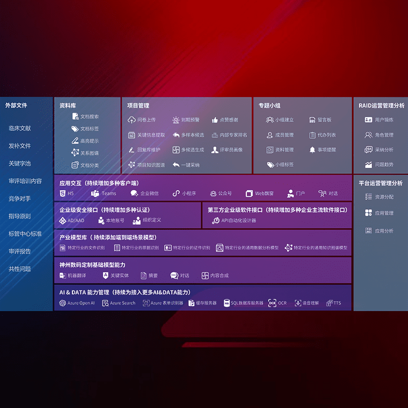 医疗器械产品上市前,,,,要熟悉严格与繁复评审标准,,,整理分析监管机构指导文件中的海量信息。。。企业急需一个智能化解决方案,,,,提升知识管理效率,,,提高评审通过率,,,,以提升其市场竞争力。。